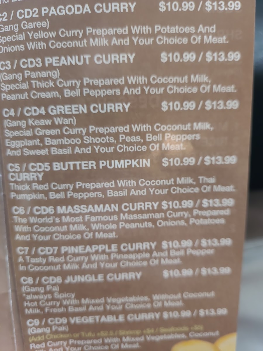 Customers rave about the diverse selection of curries, with favorites like the Red Thai Curry and the renowned Butter Pumpkin Curry, which warms the soul with its rich flavors. The signature Pad Thai is a standout, earning accolades as the best in the area.